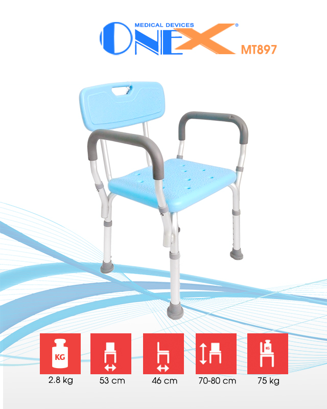 ∗ Ghế tắm có tựa lưng, tăng giảm chiều cao. Có tùy chọn màu trắng hoặc màu xanh biển.