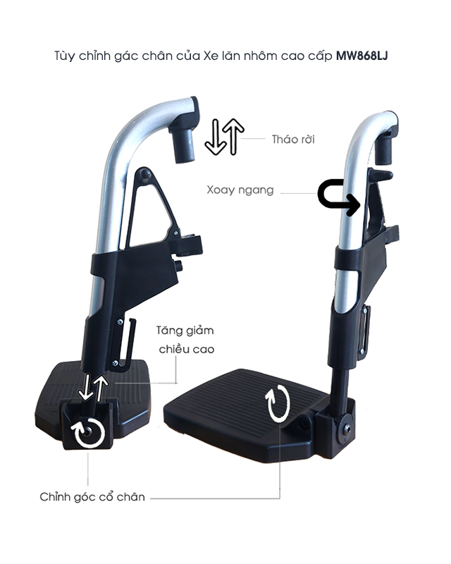– Nâng hạ chiều cao & chỉnh góc nghiêng bàn gác chân.