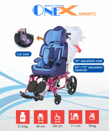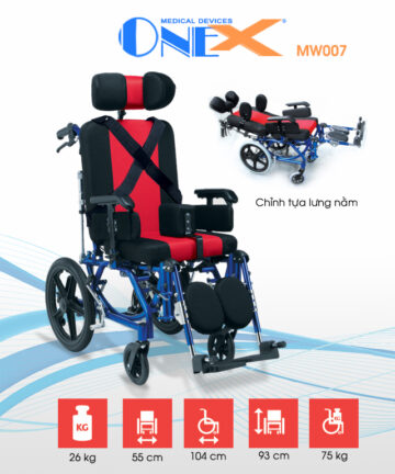 Xe đẩy có các bộ phận giúp giữ tư thế ngồi ( hoặc nằm ) của người bại liệt vận động toàn thân.
